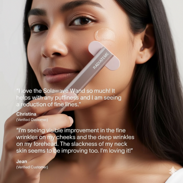 Witness the transformation as our wand smooths fine lines and boosts radiance. Scroll through real results and see the magic of red light therapy combined with soothing warmth.